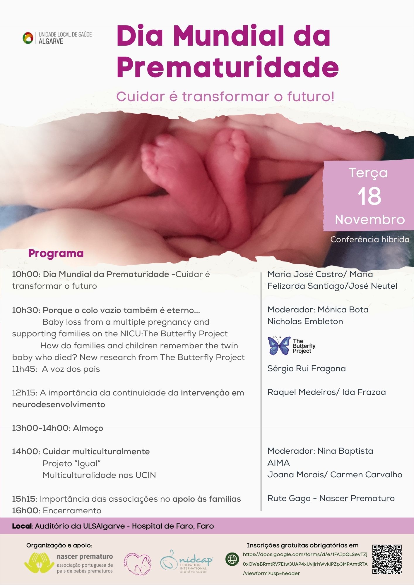 O SMIPN – Serviço de Medicina Intensiva Neonatal e Pediátrica da ULSAlgarve e o SMIPN assinalam a data com um encontro Cuidar é transformar o futuro! (cartaz em anexo) no dia 18 de novembro no Auditório do Hospital de Faro e on-line.
